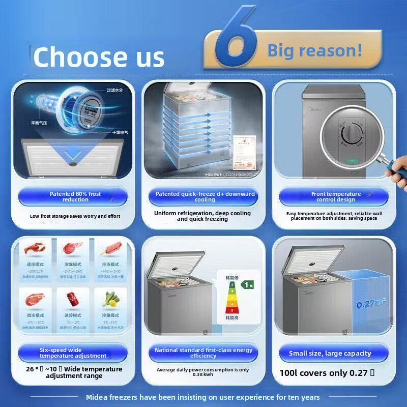 Midea 90 liters + first-class power-saving household refrigeration and freezing dual-purpose frost-reducing freezer large-capacity commercial hoarding refrigerator